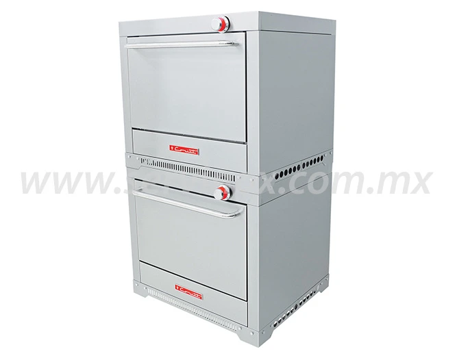 Horno con capacidad de 3 pizzas de 40 cm de diametro en cada nivel.